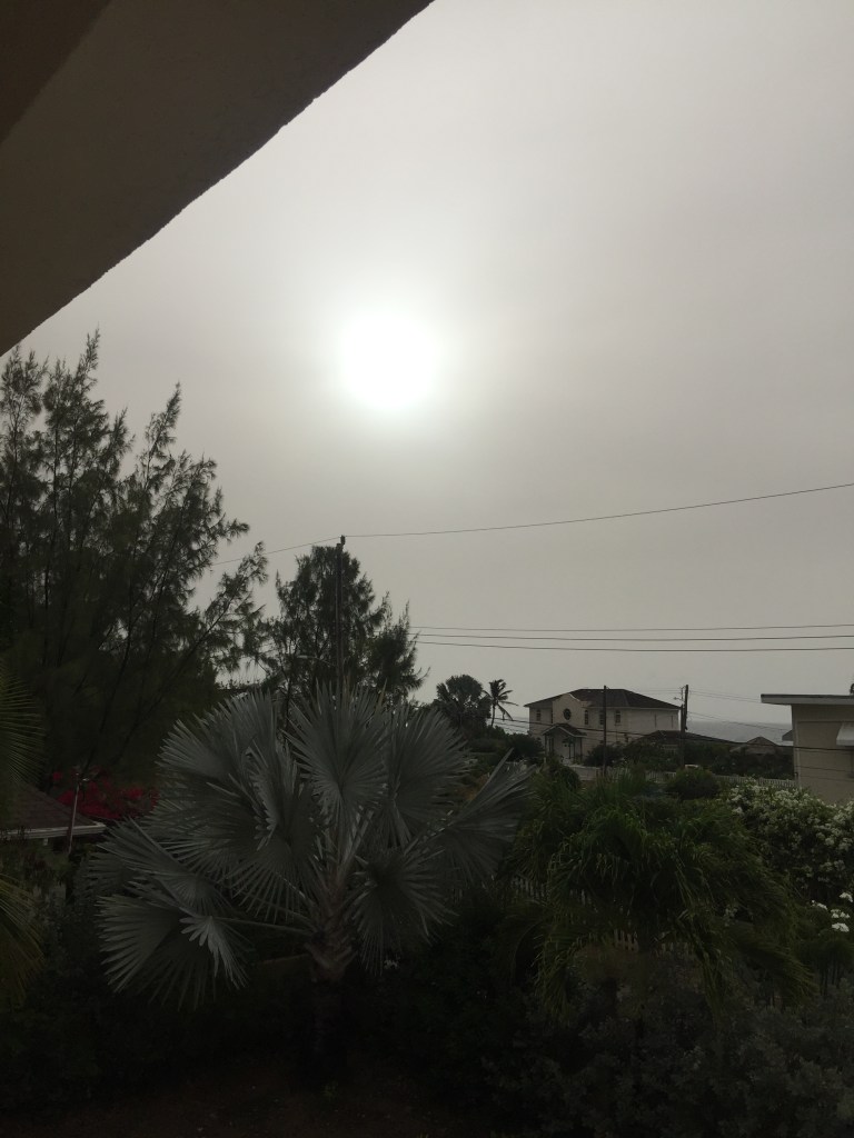Before I go on to describe our experience here in Barbados, I have to say that, first and foremost, my thoughts go out to the people of St Vincent. Anything we are experiencing here can be nothing compared to what they are going through. There have been images circulating on social media of people walking down streets covered in ash, homes and cars engulfed by ash, people fleeing in tiny boats with smoke and ash pouring into the skies behind them. So far, we have not heard of any casualties, but I understand that thousands of people are still huddled together in emergency shelters, all over the island, as I write.