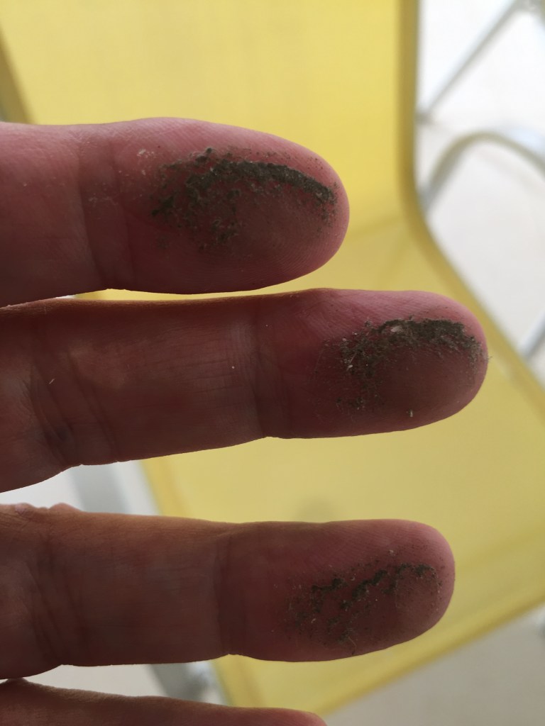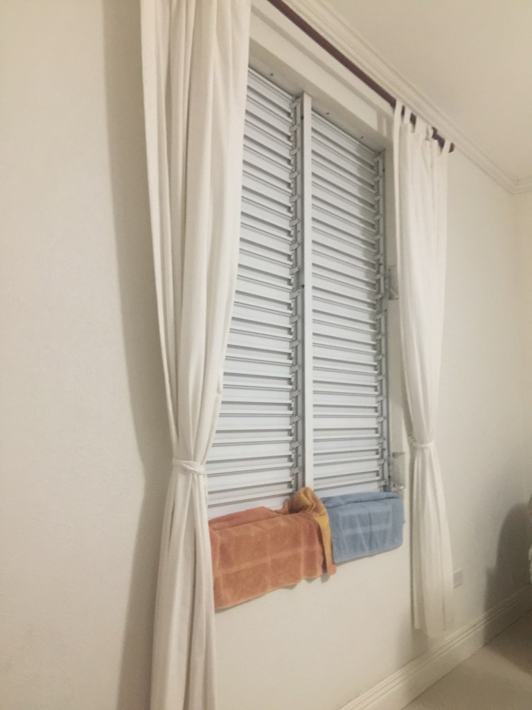 Until a couple of days ago opening the windows was still impossible due to the amount of ash blowing around. Believe me, the nights in Barbados are very hot and sticky with all the windows closed and no air con. The fan gives some respite, but M finds that the noise disturbs his sleep. But, even as the amount of ash in the air lessened, it became apparent that we still couldn’t open the windows due the piles of ash on the windowsills, and caught in every nook and cranny of the shutters. As soon as we opened them it would all blow inside.