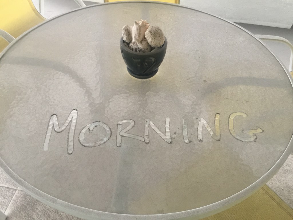 So, I spent an entire morning painstakingly cleaning the shutters so that we could once again enjoy the heavenly feel of the Atlantic breeze blowing through the house. It’s still bringing in a little ash and everything is covered in a film of it, but it’s worth it just to feel cool again. Besides, we’re kind of getting used to feeling a bit “dusty” all the time.