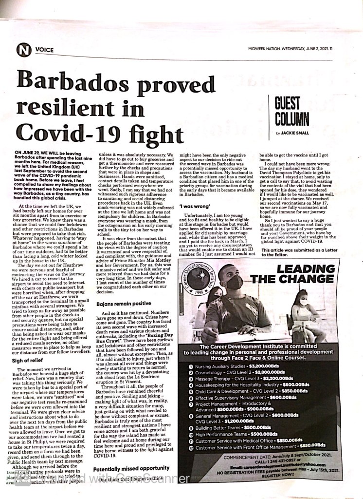 Here, in Barbados, the numbers remain low with a total of 4,074 cases and 47 deaths. The rates per million population are 682 cases and 22 deaths. New cases were almost down to zero a couple of weeks ago but we have seen another small spike over the past few days. And, while they accept that Covid will remain an ever-present danger for many months and probably years to come, things are almost back to normal apart from strict social distancing, hand sanitising and mask wearing.