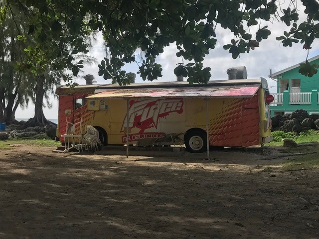 For many years, a highlight of Miami Beach was Mr Delicious, a catering van that sold Bajan snacks and cocktails. Sadly, Mr Delicious closed down a year or two ago, reportedly due to family “issues”. The lonely old van now stands desolate and rusting, in the corner under the trees.